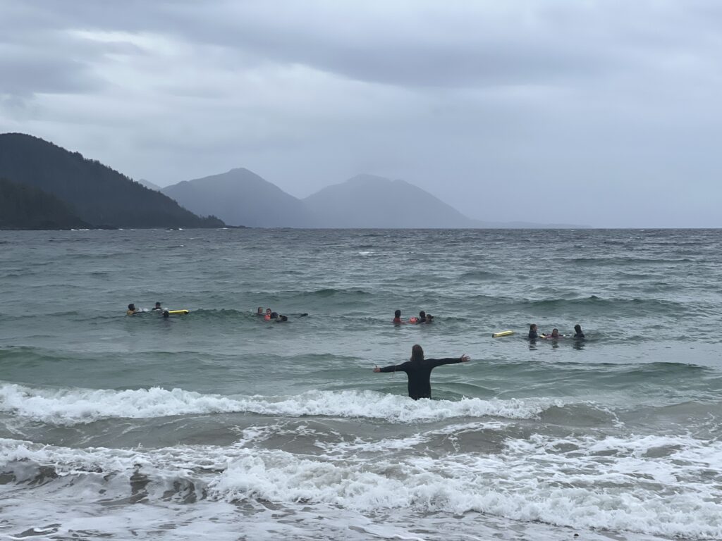 I remember how excited everyone was as we were heading out. Then came our first full day— the sky was gray, the beach cold, and light rain came and went throughout the day. After spending hours in the cold salty water practicing different lifesaving rescue drills, we warmed up by the fire, before going back into the turbulent sea.