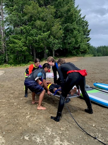 Lifesaving training in the surf at Grant Bay. © Strathcona Regional District.